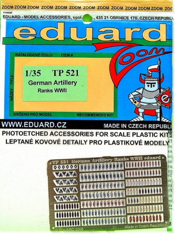 1:35 Elementy fototrawione GERMAN ARTILLERY RANKS WWII - Eduard TP521