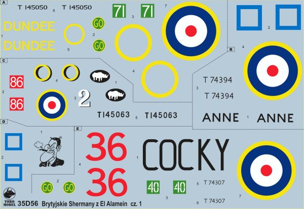 1:35 Kalkomanie - Brytyjskie Shermany z El Alamein cz.1 - ToRo 35D56