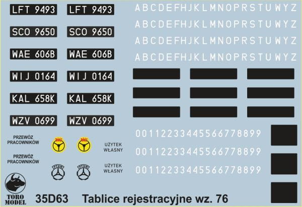 1:35 Kalkomanie - Polskie tablice rejestracyjne wz.76 - ToRo 35D063
