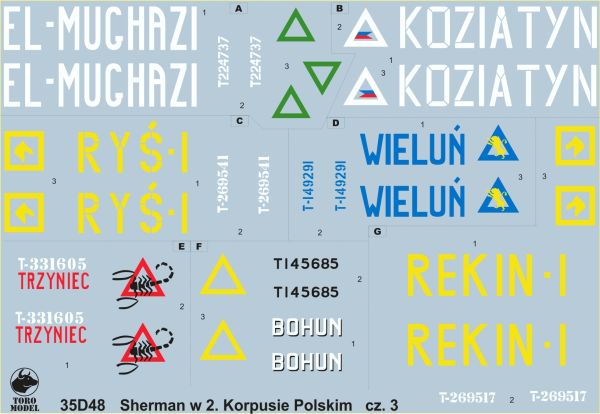 1:35 Kalkomanie - Shermany w 2 Korpusie Polskim, Włochy 1945 cz.3 - ToRo 35D48