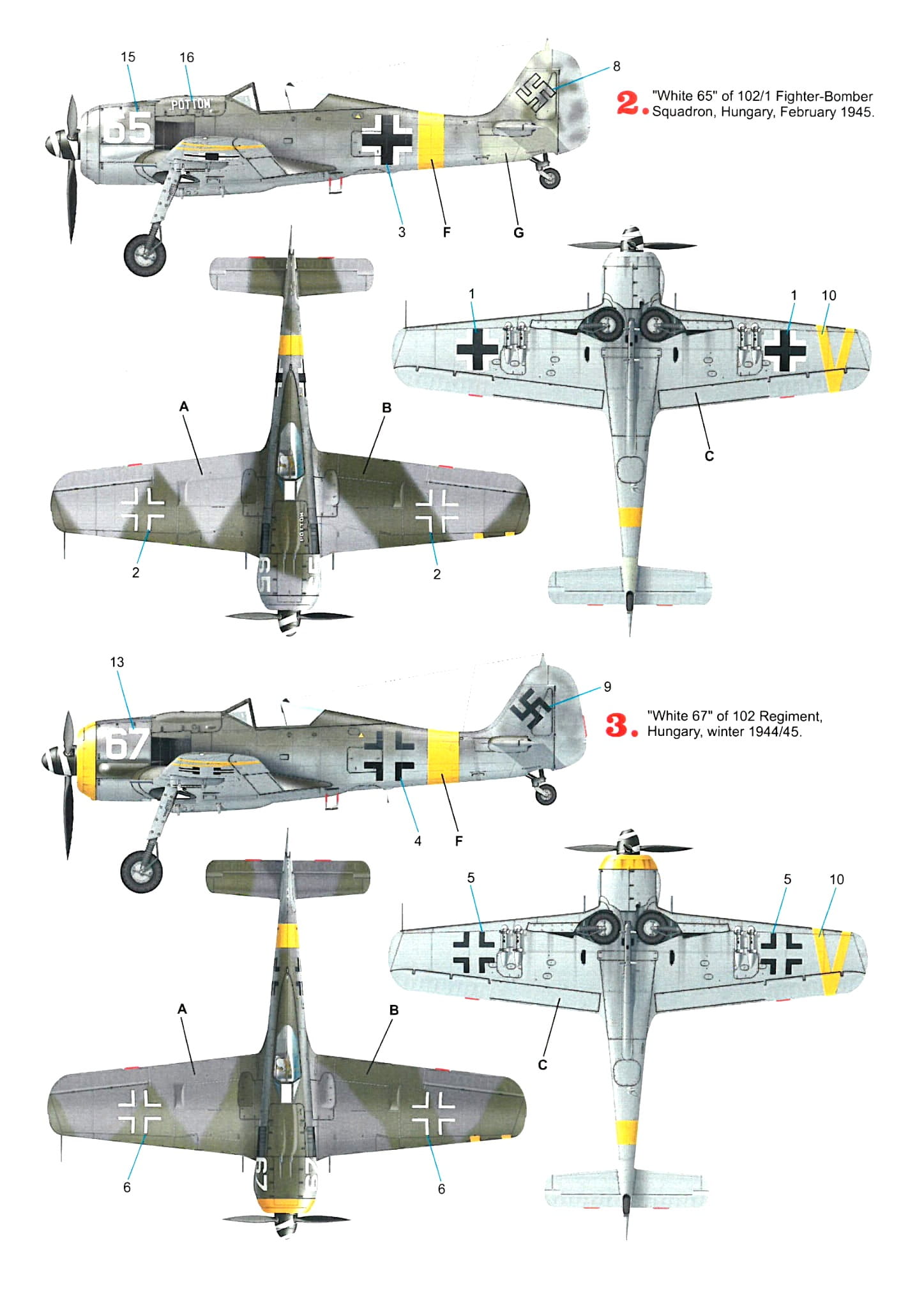 Fw 190F-8, “White 65″, 102/1 Szwadron myśliwsko-bombowy Królewskich Węgierskich Sił Powietrznych, Węgry, luty 1945 r.