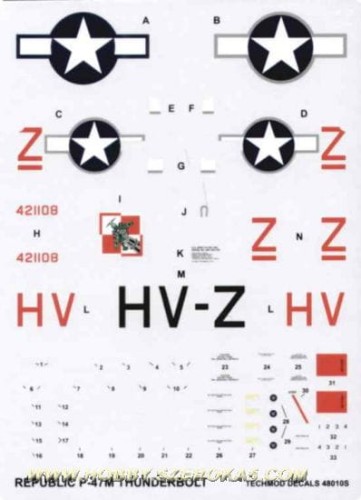 1:48 Kalkomanie P-47 M THUNDERBOLT - Techmod 48010