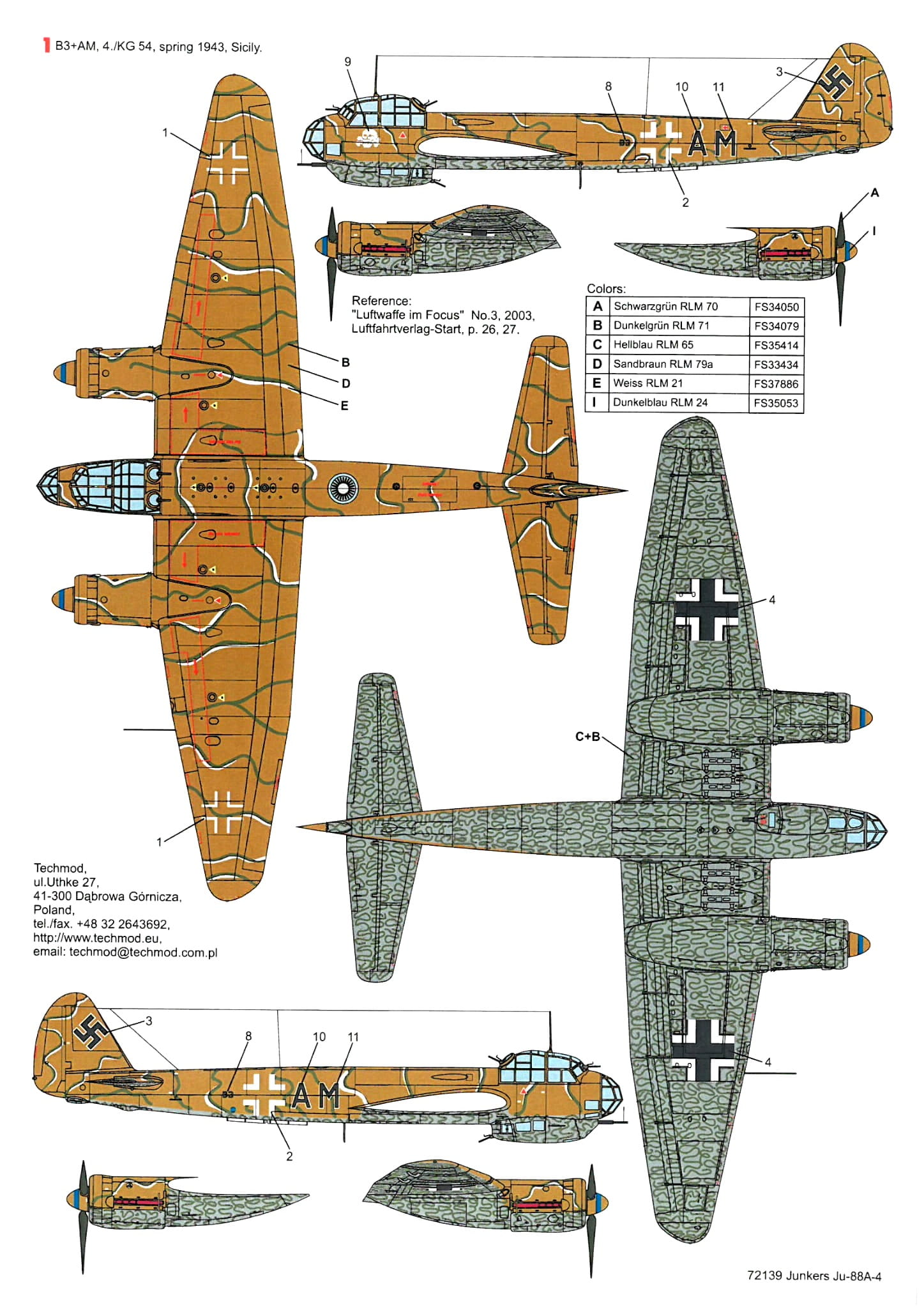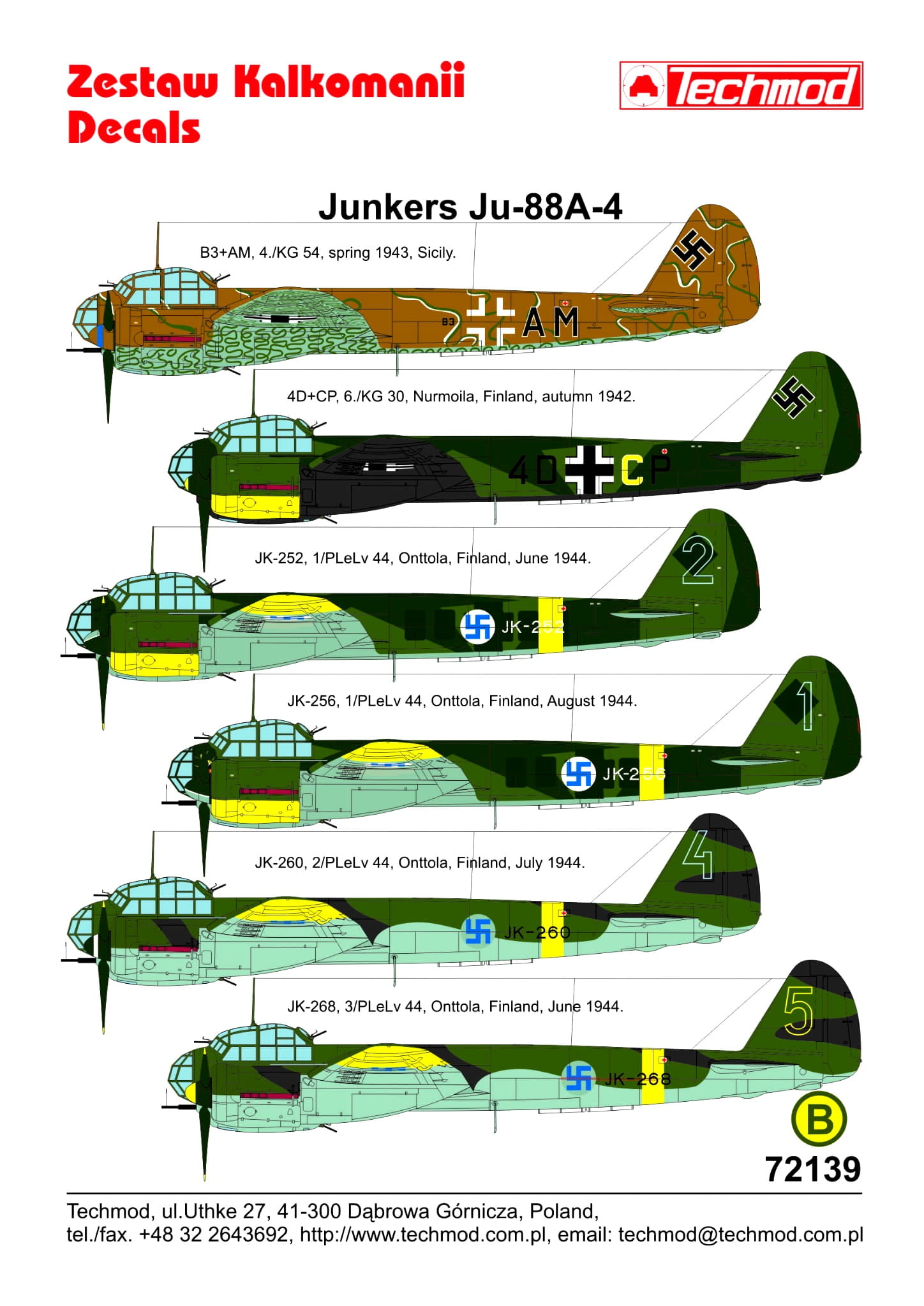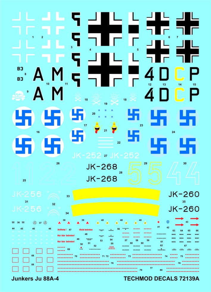 1:72 Kalkomanie Ju-88 A-4 - Techmod 72139