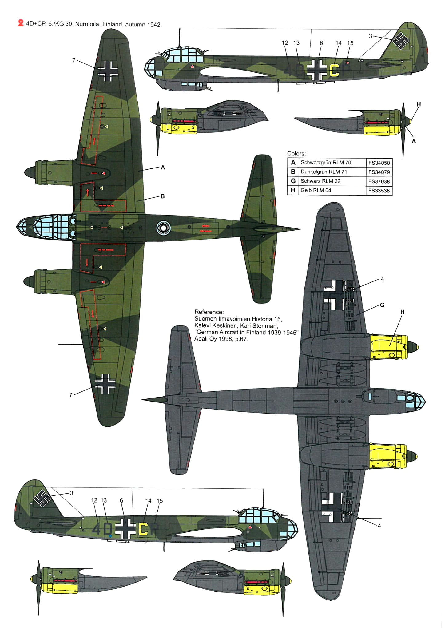 Ju 88A-4, 4D+CP, 6./KG 30, Nurmoila, jesień 1942 r.