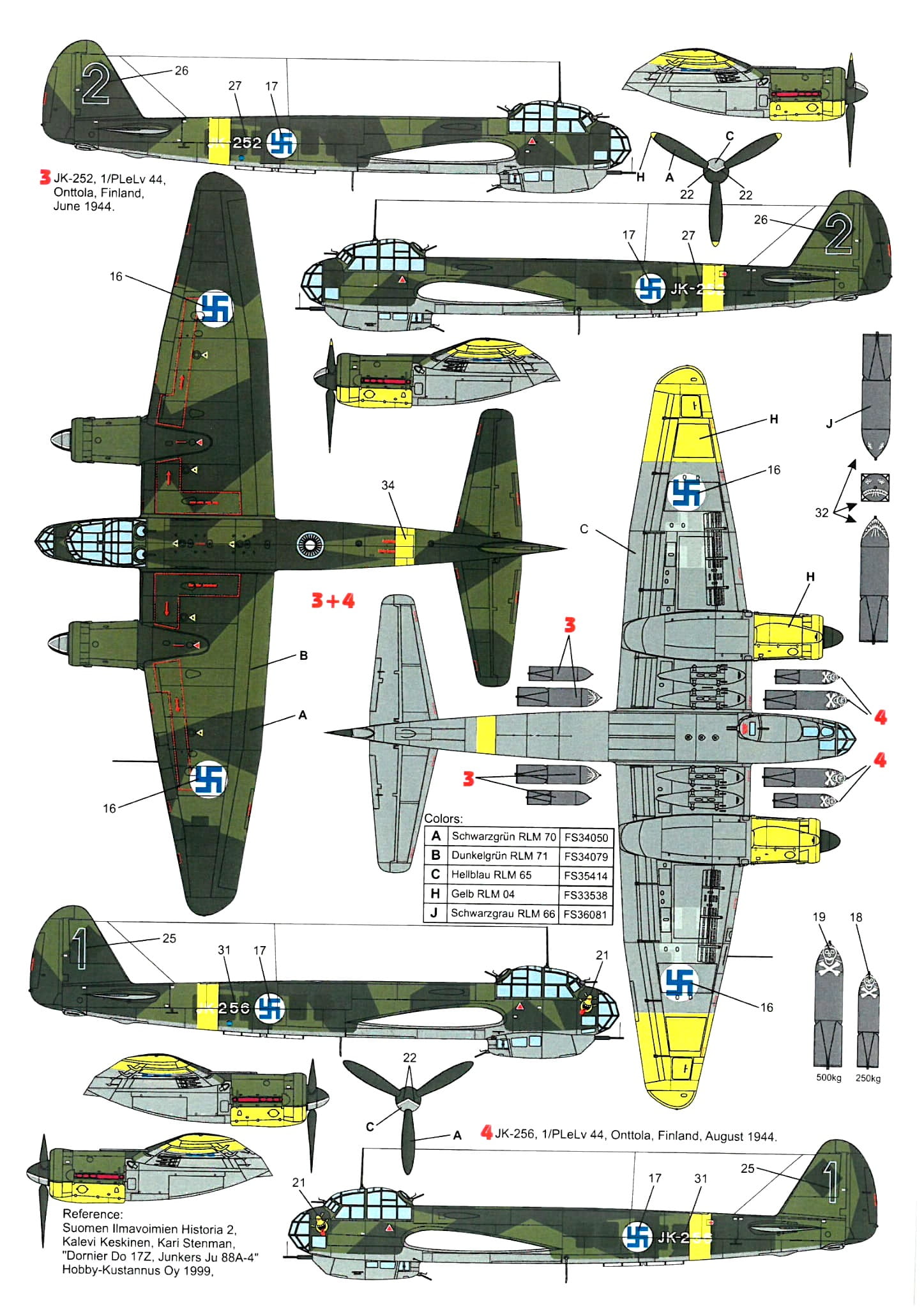 Ju 88A-4, JK-268, 3/PLeLv 44, Onttola, Finlandia, czerwiec 1944 r.