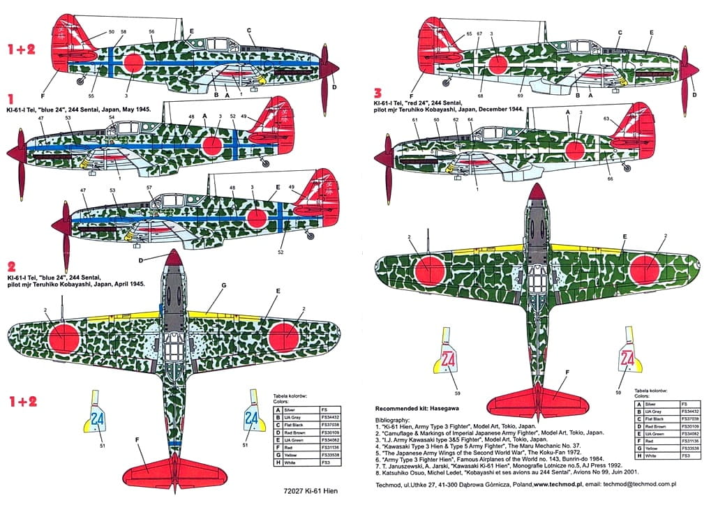 1:72 Kalkomanie Ki-61 HIEN - Techmod 72027