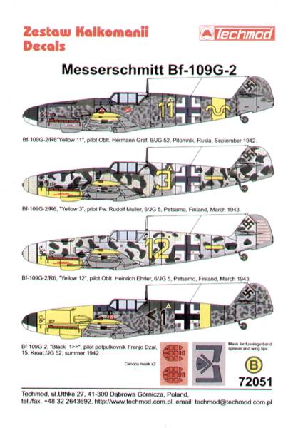 1:72 Kalkomanie Messerschmitt Bf-109 G-2 - Techmod 72051