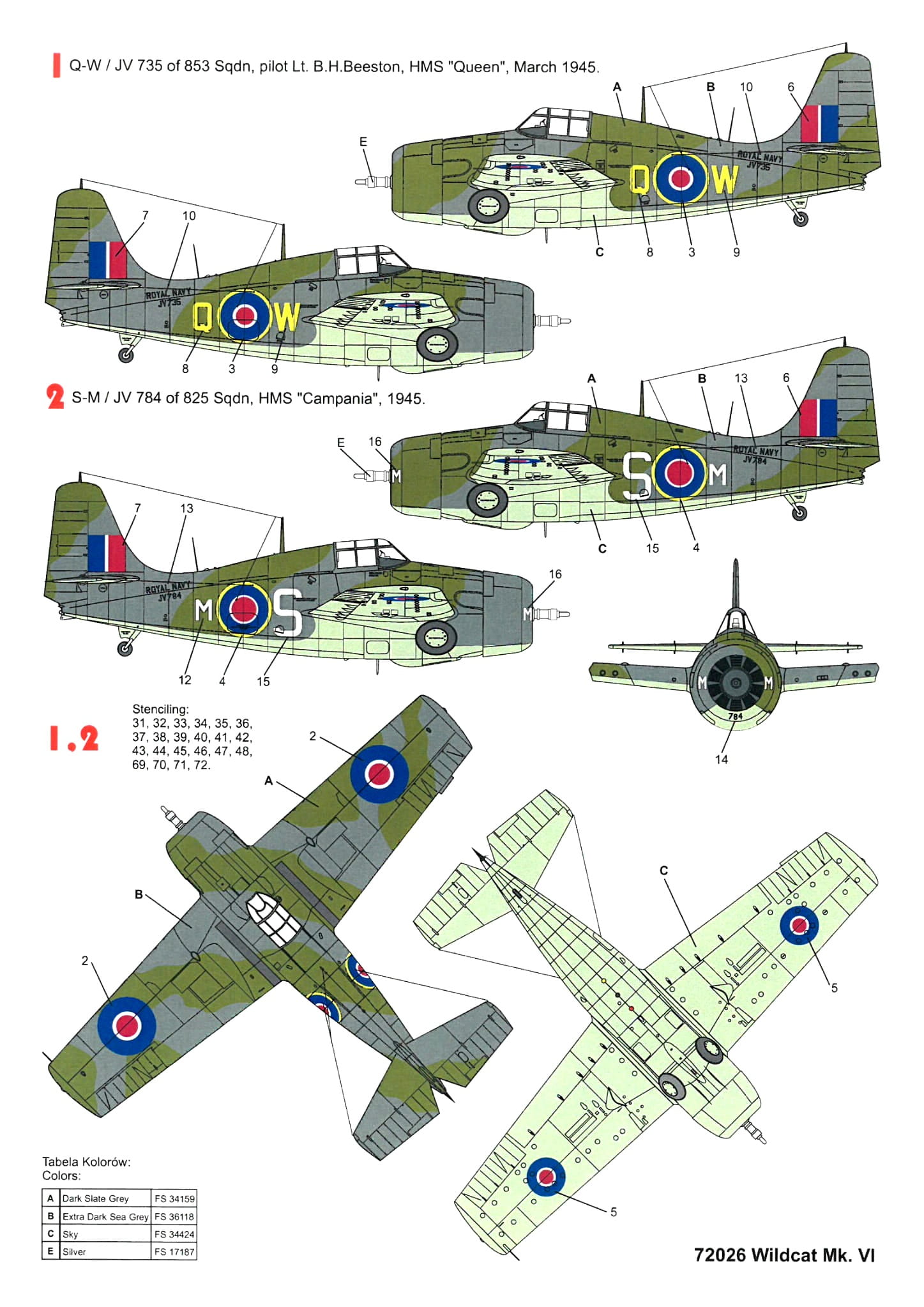 Wildcat VI, JV784 S-M, 825 FAA Sqn, HMS Campania, 1945 r.